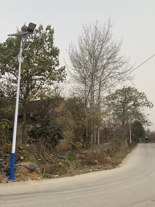 陜西藍(lán)田縣熨斗村鄉(xiāng)村道路太陽能路燈安裝效果圖一